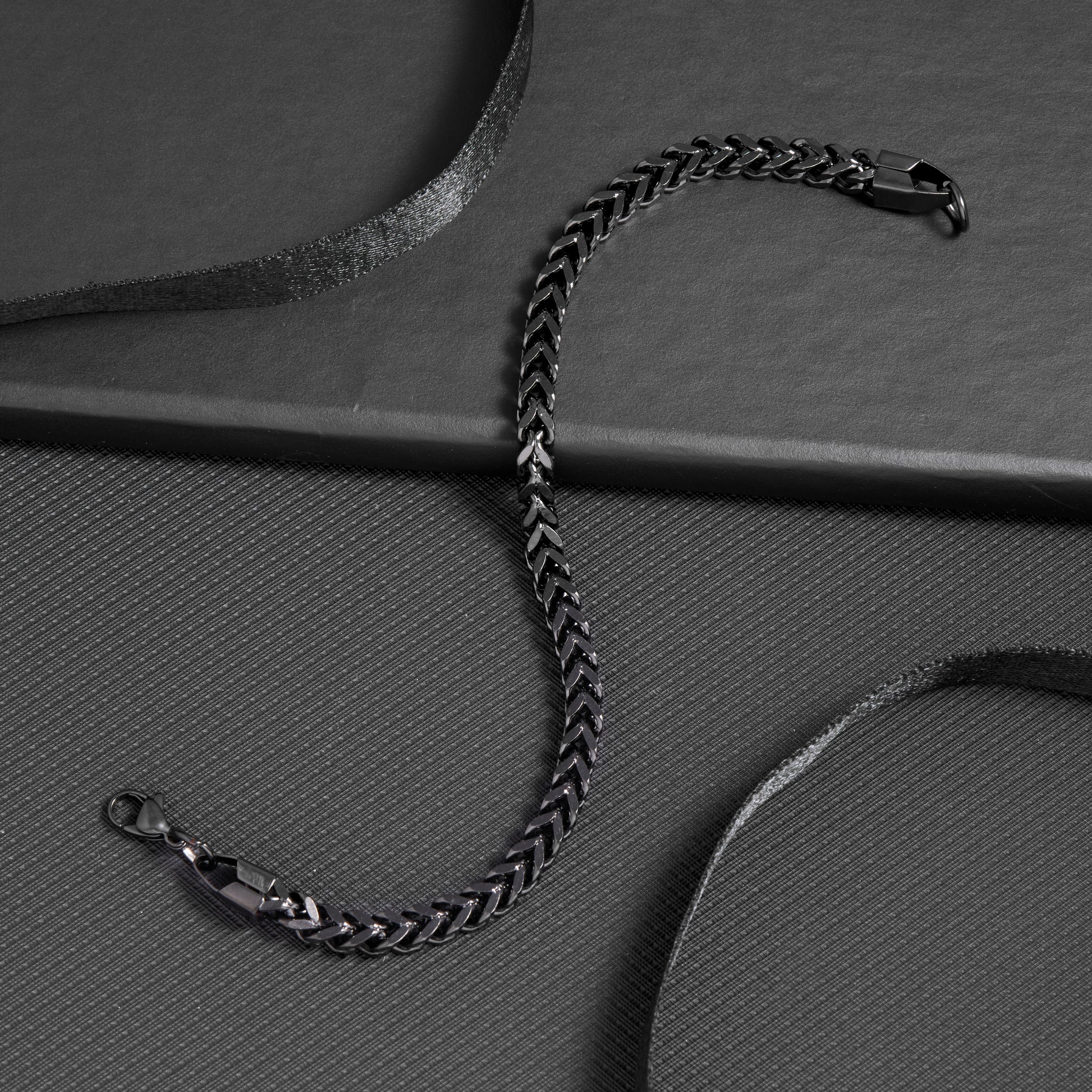 Add a sleek, edgy touch to your style with this Men’s black chevron chain bracelet. Featuring a unique V-link (chevron) pattern and a glossy black finish, this bracelet is crafted for the modern minimalist who appreciates a bold, fashion-forward accessory. Ideal for everyday wear or pairing with a sharp night-out outfit, it offers both style and comfort in one piece.